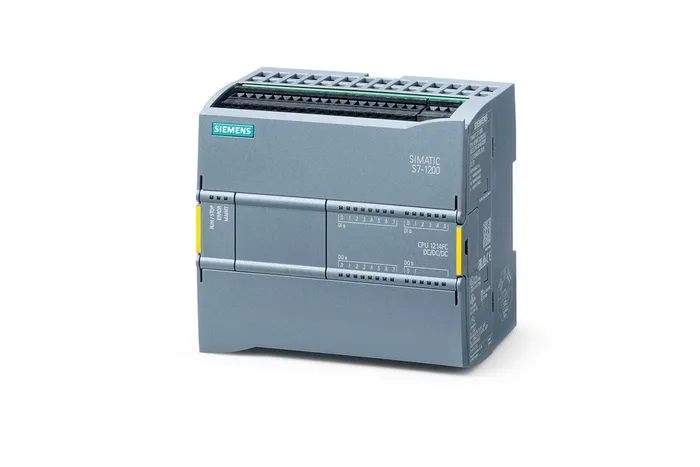 SIMATIC S7-1200F – CPU 1214 FC – compact CPU – DC/DC/DC – onboard I/O: 14 DI 24 V DC 10 DO 24 V DC 2 AI 0-10 V DC – Power supply: DC 20.4-28.8V DC – Program/data memory 125 KB